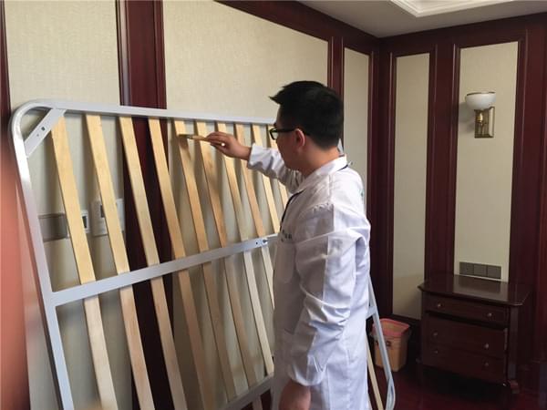 床板裸露木板用內表面除醛藥劑進行刷涂!