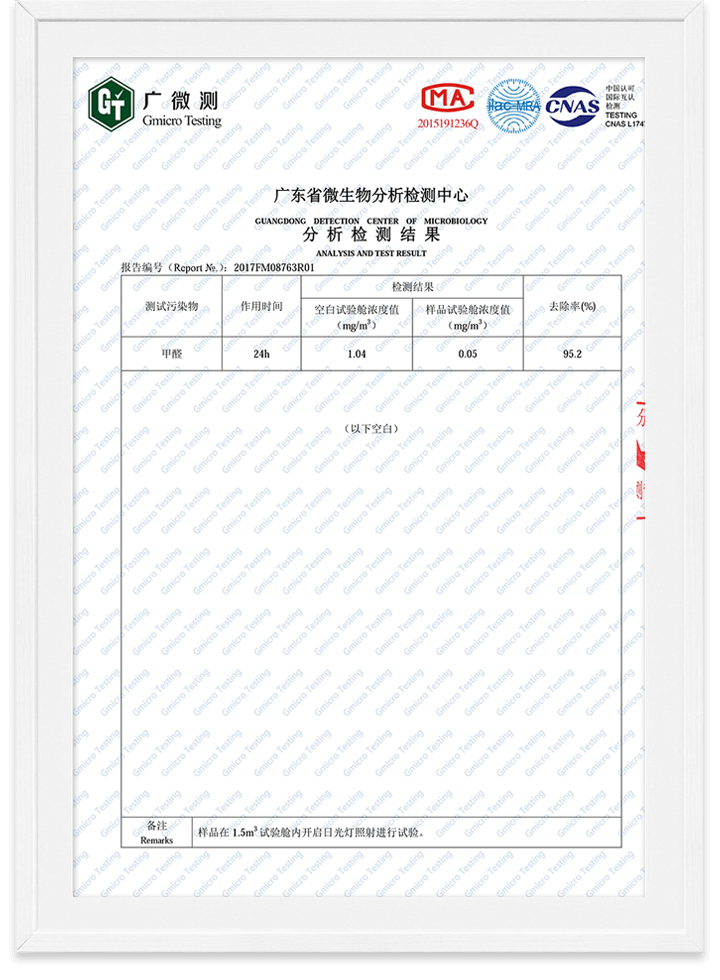除甲醛魔球無毒檢測報告