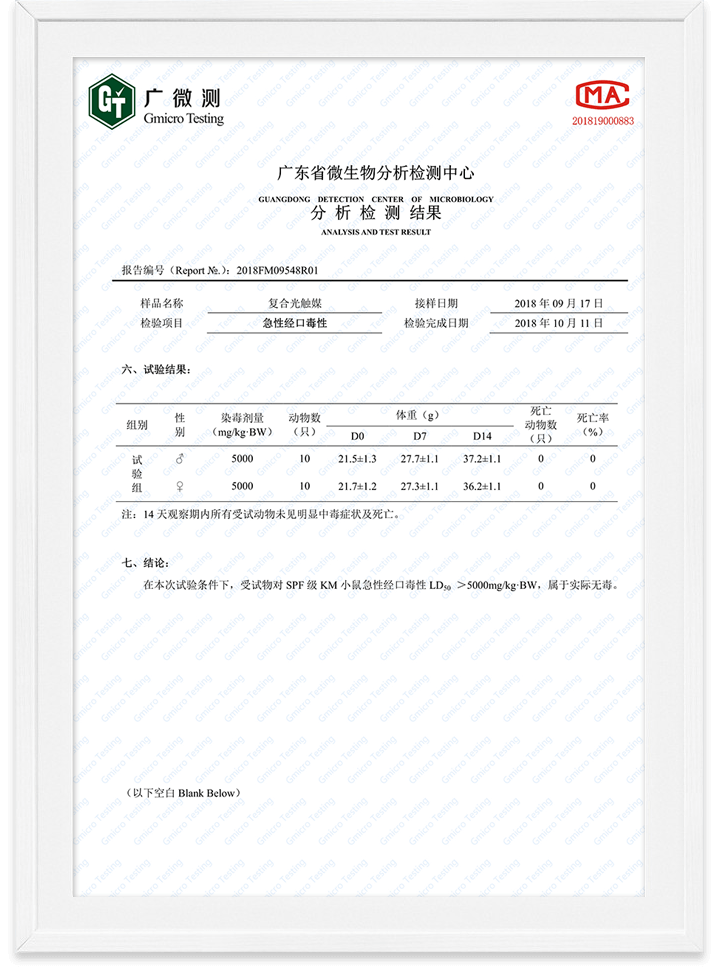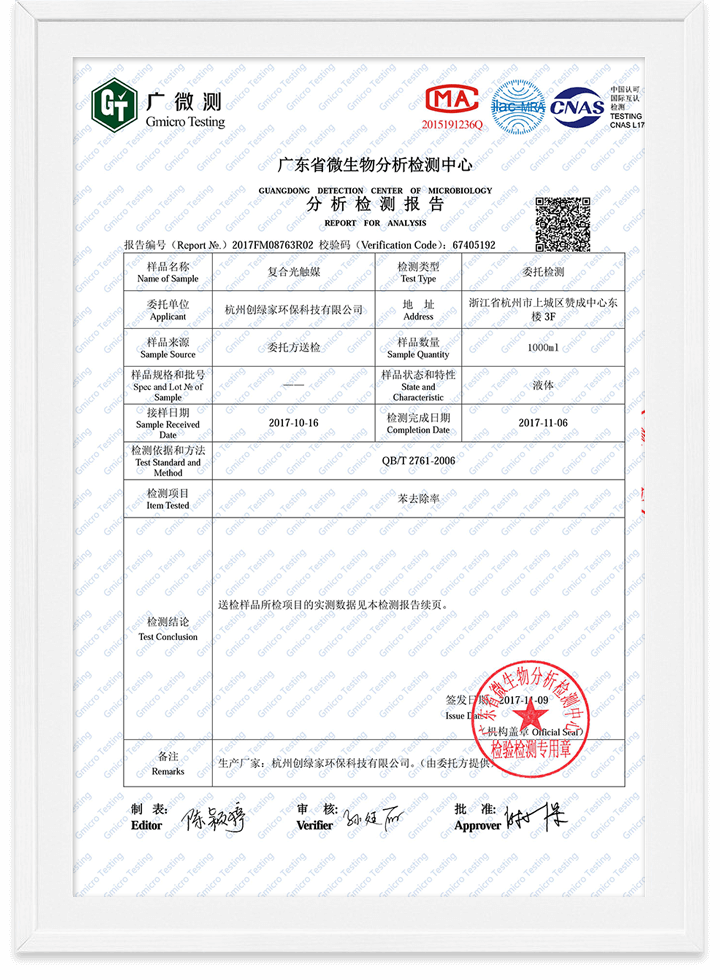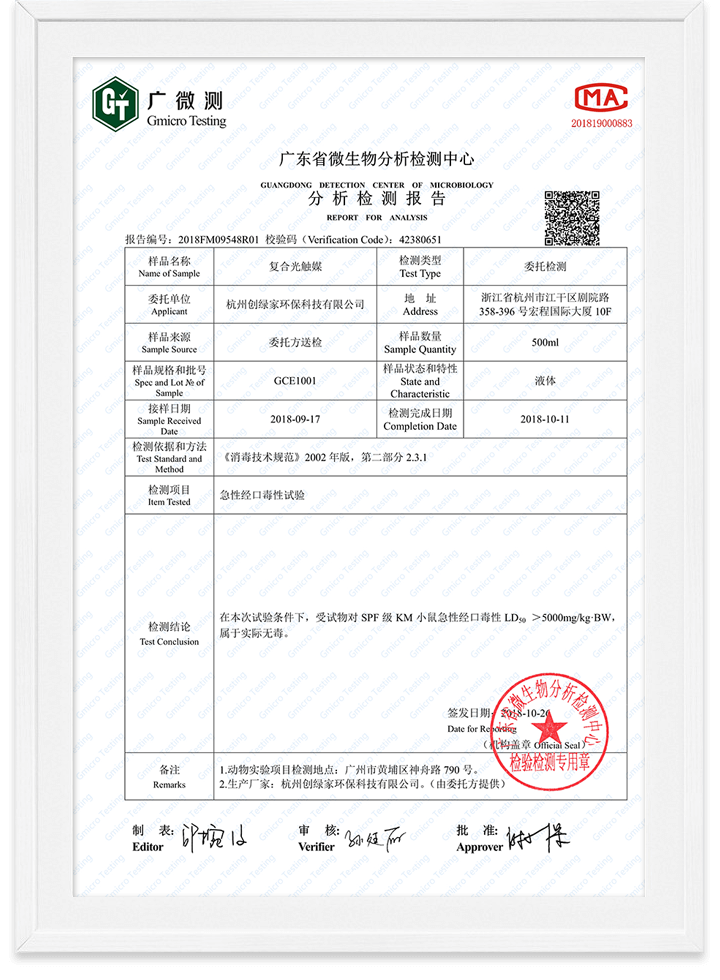 光觸媒無毒檢測報告