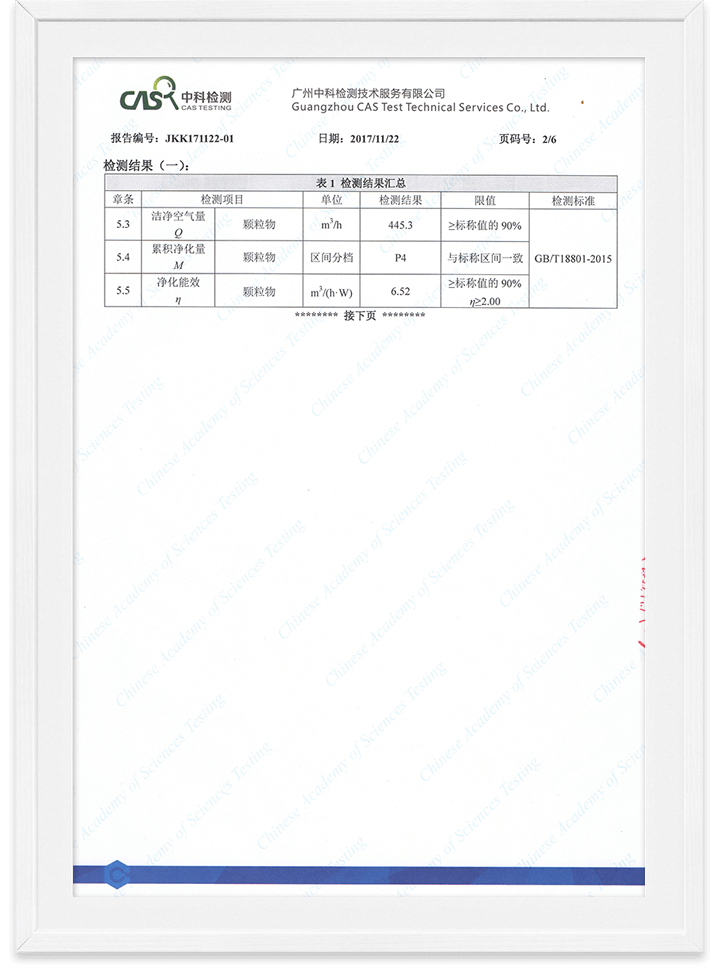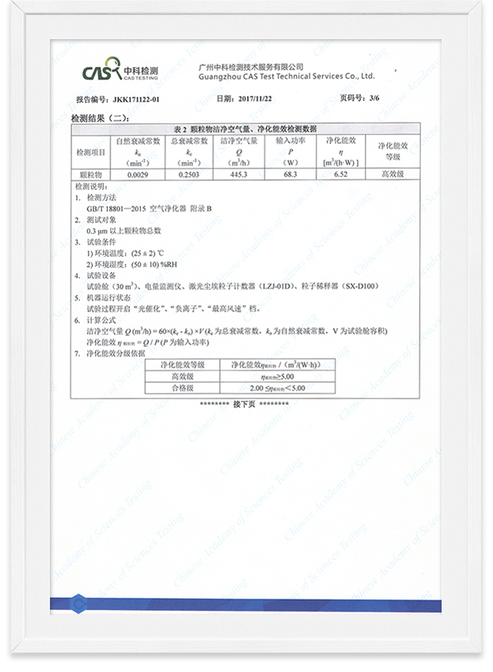 優(yōu)特派爾空氣凈化器潔凈空氣量檢測報告