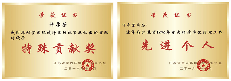 創(chuàng)綠家環(huán)保科技技術(shù)總監(jiān)、南京分公司負(fù)責(zé)人許厚榮先生也因此獲得了多項殊榮。