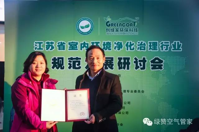 最后,凈化委向創(chuàng)綠家環(huán)??萍碱C發(fā)了“蓓蕾健康空氣行動”江蘇省執(zhí)行單位證書。