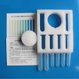 4、將顯色劑全部倒入吸收盒內(nèi),蓋上蓋子,搖勻后放置10分鐘。將吸收盒中的顏色與比色色階進(jìn)行比色,讀出被測房間的甲醛濃度。