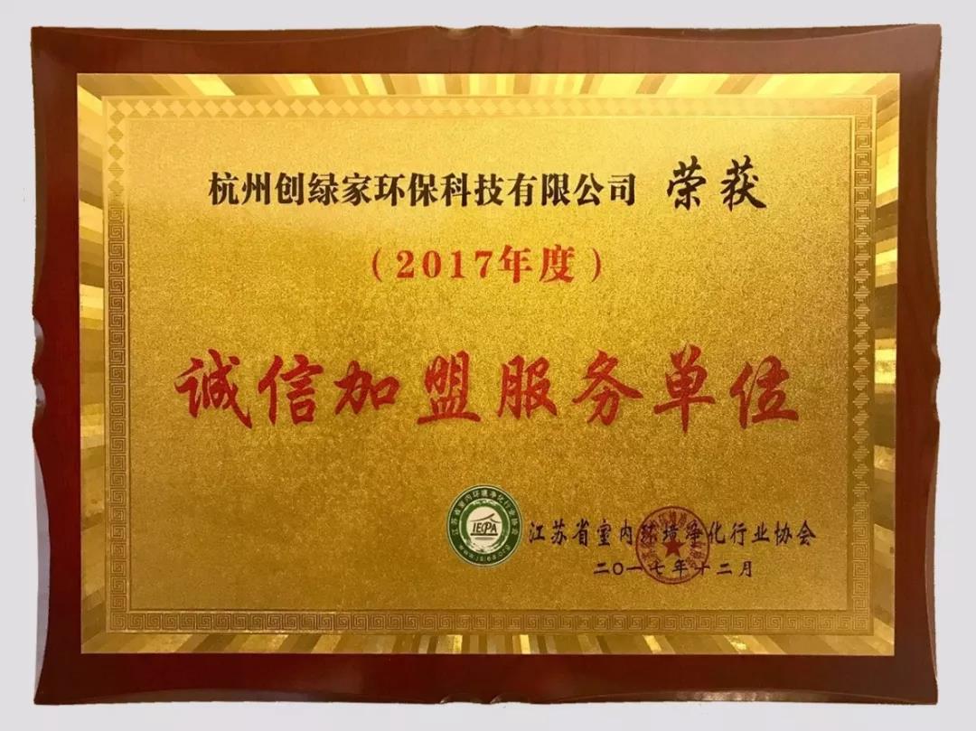 03創(chuàng)綠家環(huán)保榮獲“誠(chéng)信加盟服務(wù)單位”等多項(xiàng)榮譽(yù)
