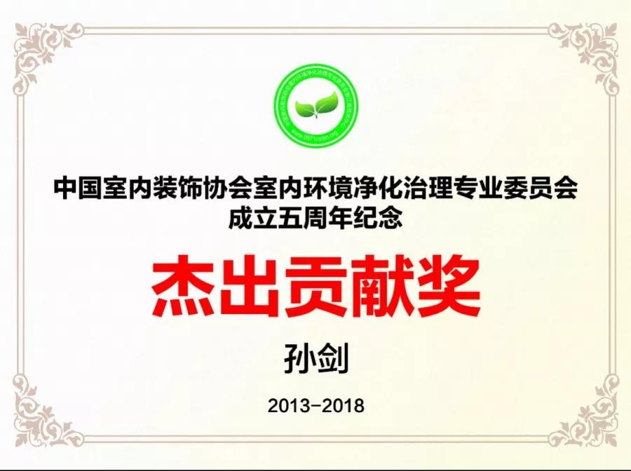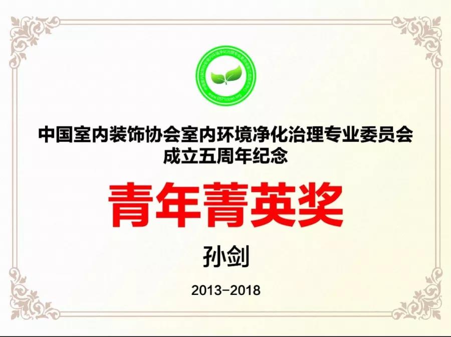 2018年12月19日,中國(guó)室內(nèi)環(huán)境凈化治理行業(yè)第五屆技術(shù)創(chuàng)新分享會(huì)在北京新聞大廈長(zhǎng)安發(fā)布廳舉行。創(chuàng)綠家環(huán)??偛脤O劍榮獲凈化委成立5周年杰出貢獻(xiàn)獎(jiǎng)和青年菁英獎(jiǎng)。