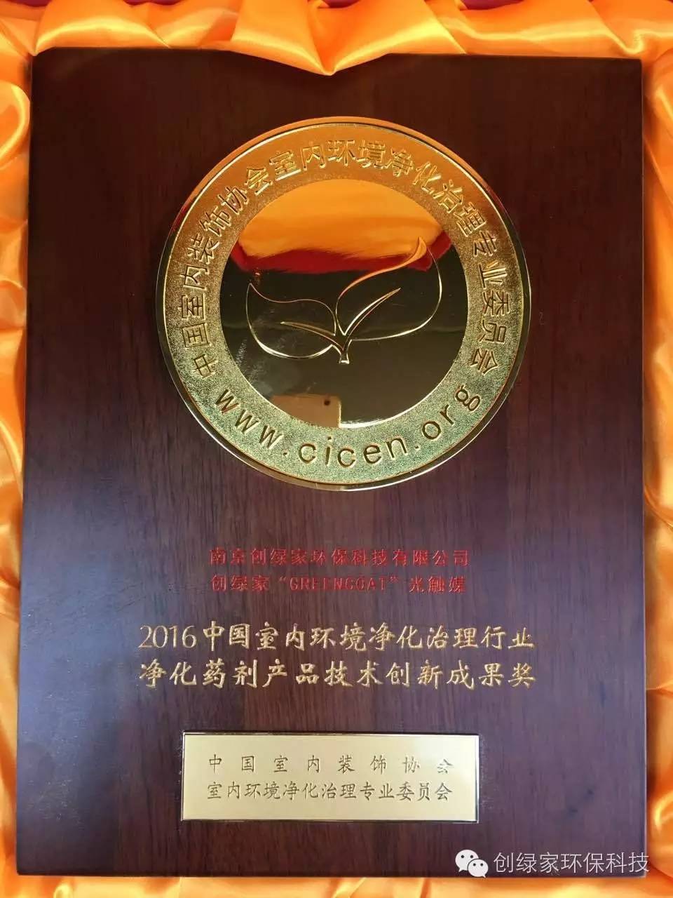 同時(shí),創(chuàng)綠家在11月底由中國凈化委組織在中國北京召開的“2016中國室內(nèi)環(huán)境凈化治理行業(yè)創(chuàng)新技術(shù)大會(huì)暨‘平臺+’‘服務(wù)+’‘健康+’戰(zhàn)略發(fā)布會(huì)”中,也獲得過“凈化藥劑產(chǎn)品技術(shù)創(chuàng)新成果獎(jiǎng)”,可謂是雙喜臨門。